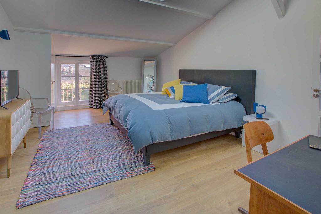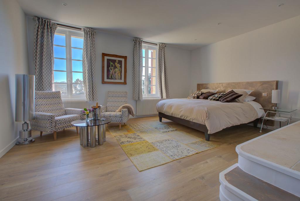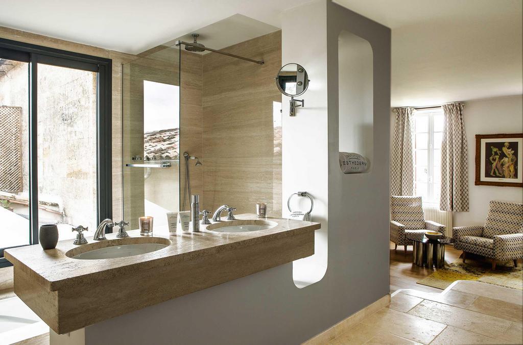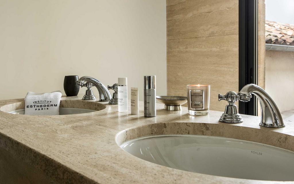 The rooms offer beautiful volumes with a view on the 12th century church, the vineyards and the valleys as far as the eye can see. The decoration of each room is unique and mixes design & tradition. The bathrooms are spacious and equipped with large Italian-style showers. A unique atmosphere of French lifestyle.